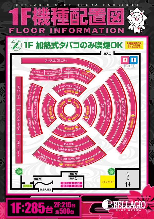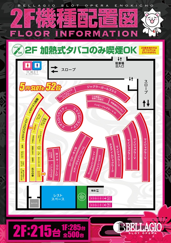 | 台数 | パチンコ/スロット:501台 |